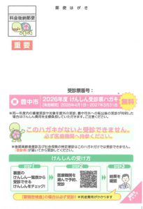 ↓2026年度けんしん受診票(お持ちでない場合はけんしんが出来ません。)