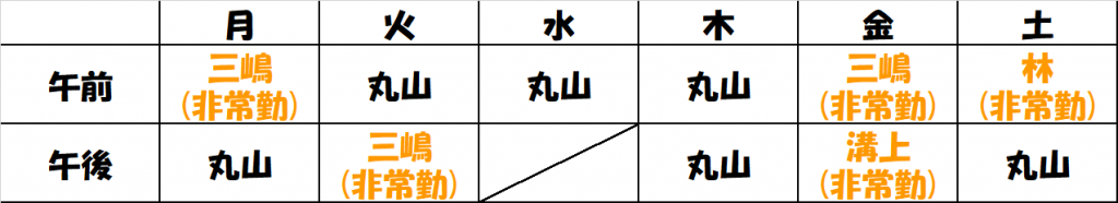 それに伴い、診療担当スケジュールは下記の通り変更させていただきます。